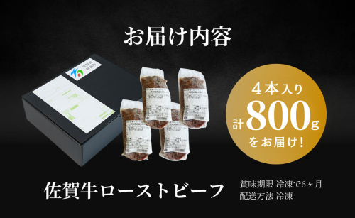2026年4月発送_【累計22,000本突破!】ローストビーフ 800g(4個入) 佐賀牛 冷凍保存 6ヶ月 ローストビーフ丼 晩酌 黒毛和牛 家族で楽しめる お節 おせち【有田まちづくり公社】N35-20