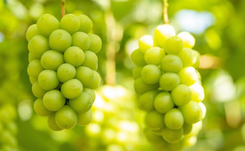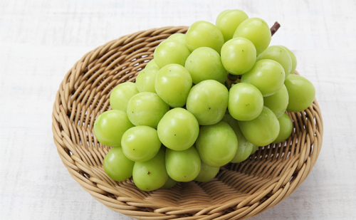 シャインマスカットは果皮が薄くてやわらかく、パリッとした歯応えとジューシーな果肉が特徴の種無しぶどうです。