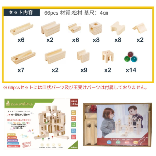 tanoshimu ビー玉転がし 積み木 66pcs | 知育玩具 おもちゃ 木製 ブロック 3歳 4歳 5歳 誕生日 立体 パズル 入園 入学 男の子 女の子 クリスマス プレゼント 指先知育 図形 算数 学習 教育玩具 スロープトイ 無塗装