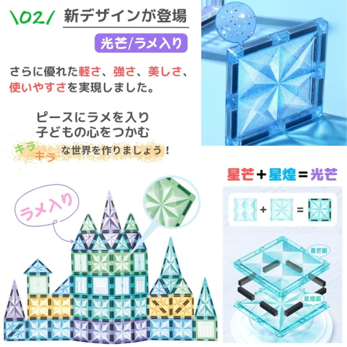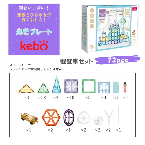 - kebo 磁石ブロック 観覧車セット 72pcs | 知育玩具 おもちゃ積み木 立体パズル クリスマス プレゼント 3歳 4歳 5歳 6歳 お誕生日 男の子 女の子 入園 入学 マグネットブロック ラメ入り リニューアル新登場