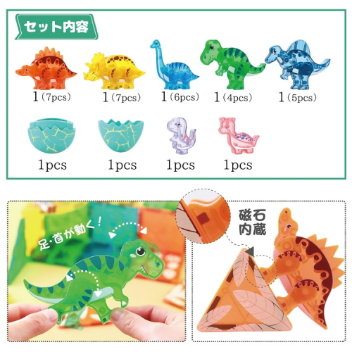 「kebo恐竜磁石ブロックフィギュア」は、33ピース入りで、自由に組み立てて遊べる知育おもちゃです。