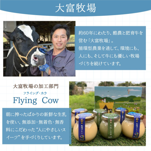 その大富牧場の加工部門「Flying Cow(フライング カウ)」では、朝に搾ったばかりの新鮮な生乳を使い、無添加・無着色・無香料にこだわった“人にやさしいスイーツ”を手づくりしています。