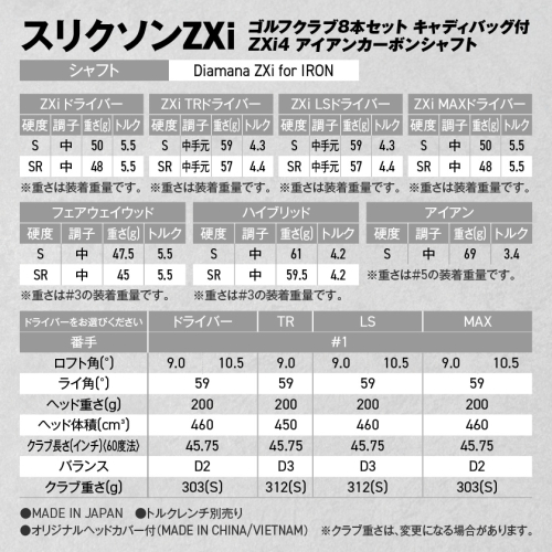 スリクソンZXi ゴルフクラブ8本セット キャディバッグ付【ZXi4 アイアンカーボンシャフト】_Z5-C701