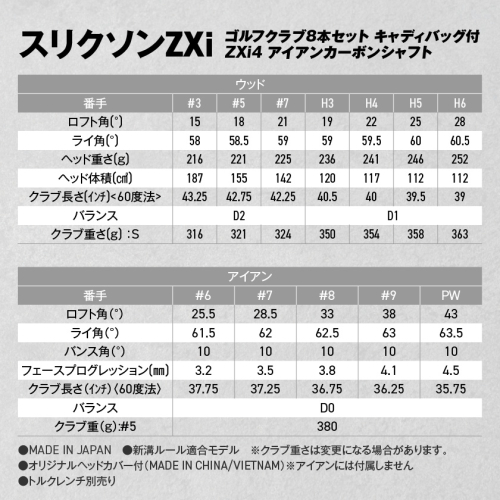 - スリクソンZXi ゴルフクラブ8本セット キャディバッグ付【ZXi4 アイアンカーボンシャフト】_Z5-C701