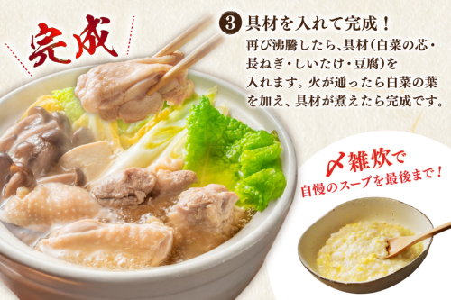 博多名物「水炊き」を、本格スープと国産鶏モモ肉で手軽に楽しめるセットです。