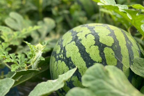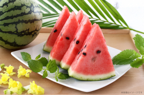 鮮やかな紅色の果肉が特徴で「糖度13度前後」の甘みが強い自慢の大玉スイカ 「羅皇ザ・スウィート」をぜひご賞味ください。
