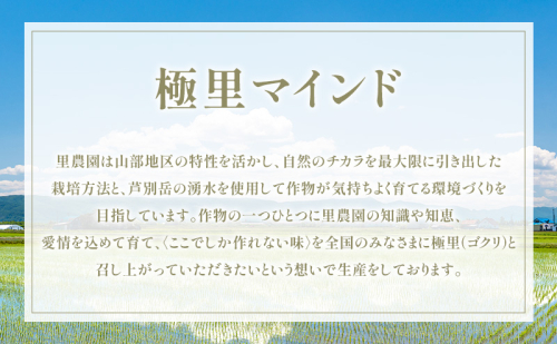 作物の一つひとつに里農園の知識を知恵、愛情を込めて育て、〈ここでしか作れない味〉を全国のみなさまに極里(ゴクリ)と召し上がっていただきたいという想いで生産をしております。