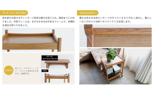 Herit. Multi Wagon 2段は上質なオーク材による、自然素材の温かみを感じていただきつつ、木部フレームのなだらかな丸みがデザイン性を演出したマルチワゴンです。