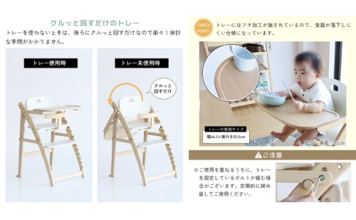 離乳食が始まる生後7 カ月ごろから、成長に合わせてパーツを調整することで、幼児の食事シーンから学習用チェア、大人用チェアとしても活躍します。