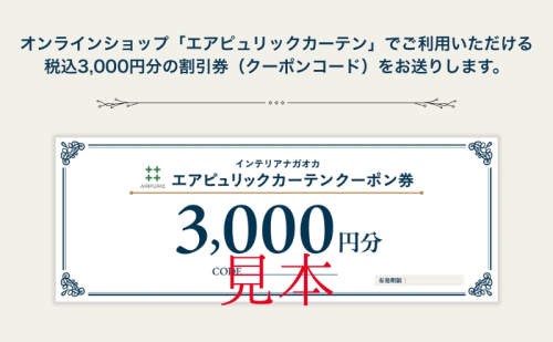 - 「エアピュリックカーテン」オーダーカーテンクーポン券(3,000円相当)