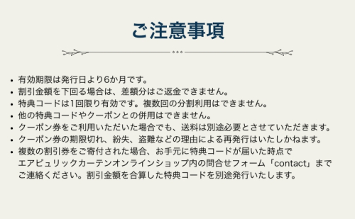 - 「エアピュリックカーテン」オーダーカーテンクーポン券(10,000円相当)