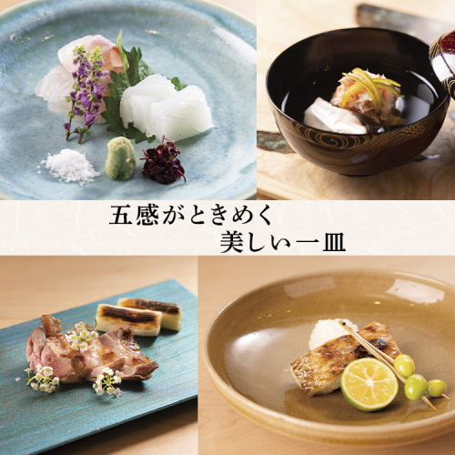 先付、八寸、小皿、お造り、小鉢、椀物、焼物、進肴、お食事、デザート