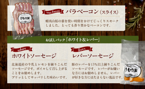 - 【令和8年2月から順次出荷】 けむり屋 バラエティー セット 詰合せ 無添加 ソーセージ ウィンナー バラ ベーコン クラコウ ボローニャ 加工肉 お肉 肉 豚肉 北海道 上富良野町