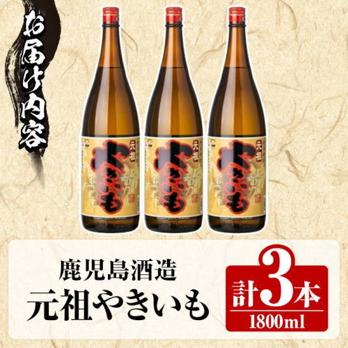 鹿児島酒造「元祖やきいも」(1800ml×3本) 国産 鹿児島県産 焼き芋 焼芋 焼いも 本格焼酎 芋焼酎 お酒 アルコール お湯割り ロック 父の日 ギフト 1升瓶 一升瓶 【鹿児島酒造】akn009-27 2458400 - 鹿児島県阿久根市