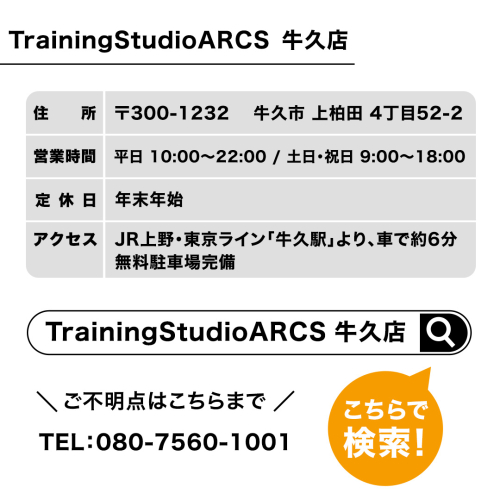また、牛久店では2022年にどなたでも安心してご利用いただけるよう、バーの初期設定を極限まで軽量化した専門のマシンを導入し、より安全な運動処方を行っております。