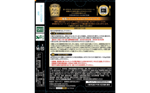 忙しい日々の中にも、美しさや愉しみを見出す大人のために。ハインツのソースづくりのノウハウが息づくプレミアムパスタソース。 厳選された素材の旨みと、磨き上げられたレシピが奏でるこだわりのおいしさが、ゆったりとした大人の時間を演出します。 甘みとコクが特徴の地鶏と、マッシュルームを使用したクリームソースです。 旨み豊かなフォン・ド・ヴォーを使用することで、濃厚でコク深い味わいに仕上げました。 ■返礼品の地場産品基準■ 小諸市内の工場で加工・製造