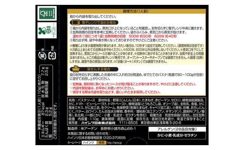 「ハインツ」大人向けのパスタ 紅ずわい蟹のトマトクリーム 10箱 2460576 - 長野県小諸市