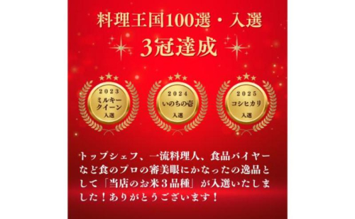 ◆ 米・食味分析鑑定コンクール国際大会にて、2年連続「ベストファーマーズ賞」に選ばれた自慢のお米です。