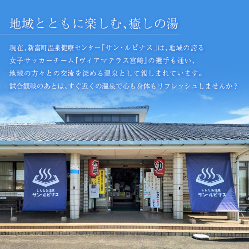 現在、新富町温泉健康センター「サン・ルピナス」は、地域の誇る女子サッカーチーム「ヴィアマテラス宮崎」の選手も通い地域の方々との交流を深める温泉として親しまれています。