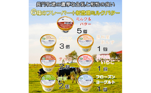 長門牧場 自社製造アイスクリーム プレミアムフレーバー「ミルク&バター」入り贅沢バラエティセット15個 人気スイーツ 濃厚ミルク 直送 牛乳 生乳 国産 夏ギフト 長野県 贈答品 お土産 お中元 お歳暮 クリスマス