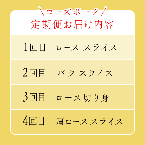 - 【 厳選 4部位 】至福 の ローズポーク 定期便 ( 満足コース ) ブランド豚 銘柄豚 豚肉 豚 肉 お肉 にく ロース 生姜焼き しゃぶしゃぶ 焼肉 バーベキュー 厚切り とんかつ ポークソテー トンテキ ギフト 贈答 贈り物 茨城県産 茨城県共通返礼品 [AE082ci]