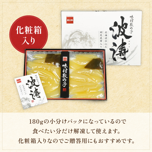 【6か月定期便】味付数の子【波涛】180g×2袋(化粧箱入)北海道産利尻昆布入り 全6回 R001-074