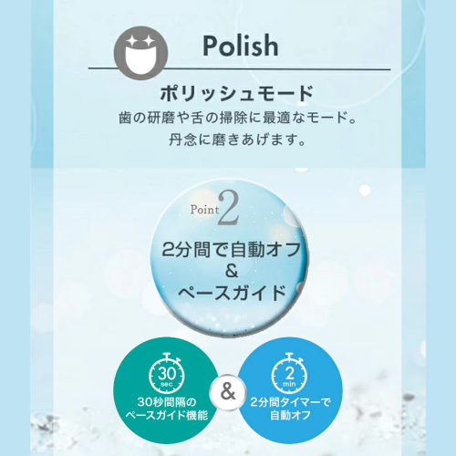 毎分31,000回の音波振動により、たった2分で美しい歯と歯ぐきへ導きます。