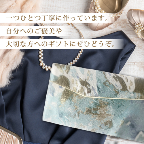 - myフクサ(袱紗)スナップ付 / 水彩画風ジャガード 淡ブルー系 (サテン生地ゴールド)