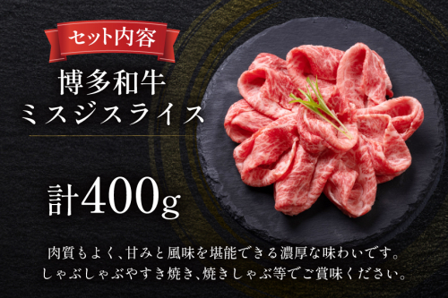 牛肉 A4 A5 博多和牛 ミスジ スライス 400g [木村食品 福岡県 宇美町 um40beg040024] 肉 にく 和牛 しゃぶしゃぶ すき焼き 博多 冷凍 希少部位 黒毛和牛 小分け