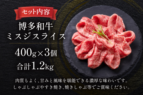 - 牛肉 A4 A5 博多和牛 ミスジ スライス 400g 3個 計1.2kg [木村食品 福岡県 宇美町 um40beg040022] 肉 にく 和牛 しゃぶしゃぶ すき焼き 博多 冷凍 希少部位 黒毛和牛 小分け