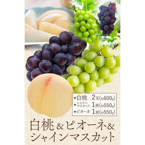 商品情報:白桃とシャインマスカットとピオーネの詰め合わせ