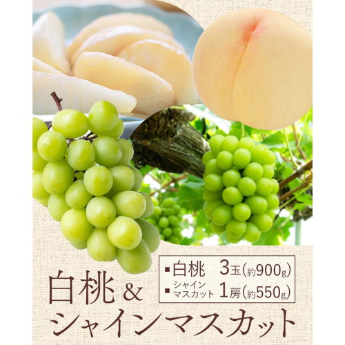 - 【先行予約】桃 ぶどう 白桃 3玉 約900g(1玉約300g)シャインマスカット 晴王 1房 550g以上 もも 葡萄 詰合せ 岡山 国産 フルーツ 果物 ギフト 桃茂實苑《6月中旬-8月中旬頃出荷》岡山県 浅口市 フルーツ ぶどう 果物 青果【配送不可地域あり】