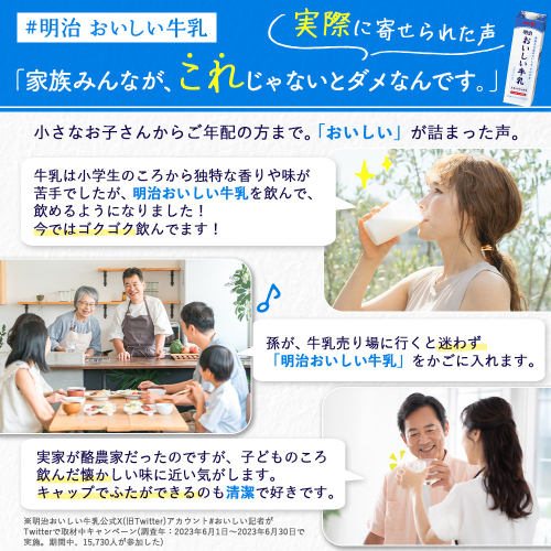 「明治おいしい牛乳」は牧場で飲む牛乳のような、まろやかなコクと香り、後味のさわやかさを持つ牛乳です。