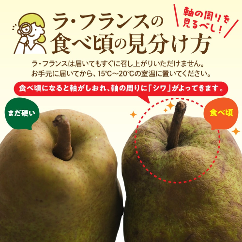 ※ラ・フランスは追熟が必要です。軸の周りを指で押してやわらかくなった時が食べごろです。