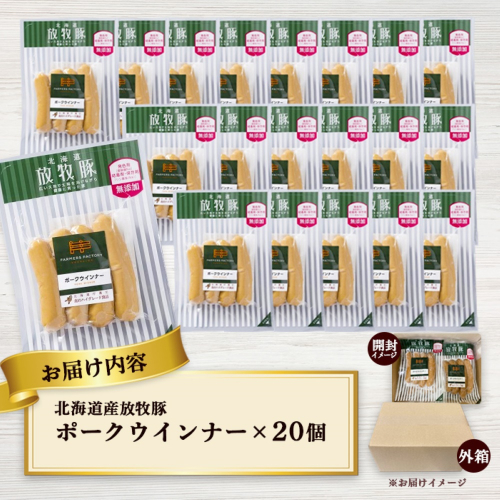 北海道産放牧豚 無添加ポークウインナー ×20パック【120019】