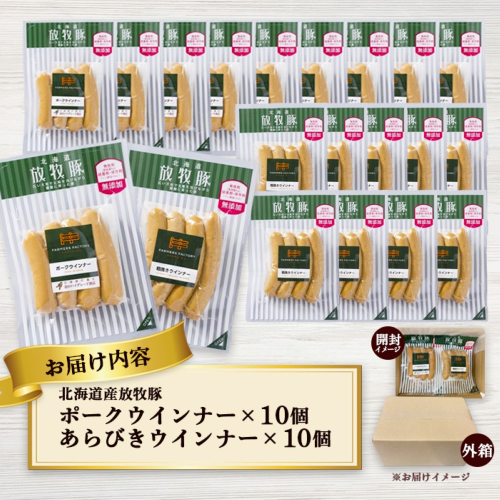 北海道産放牧豚 無添加ポークウインナー・粗挽きウインナー ×各10パック【120023】