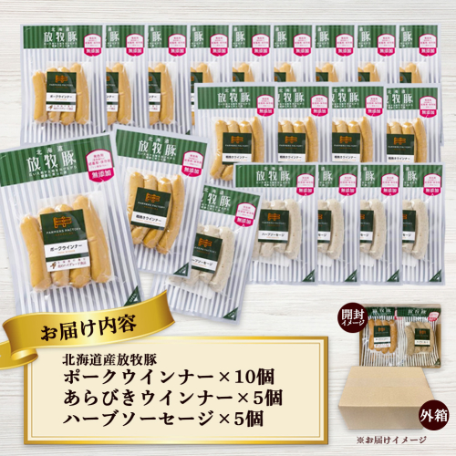 北海道産放牧豚 無添加ポークウインナー ×10パック&粗挽きウインナー・ハーブソーセージ ×各5パック【120025】