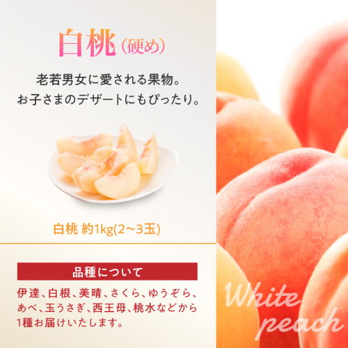 ・硬め白桃1kg(2~3玉)(伊達、白根、美晴、さくら、ゆうぞら、あべ、玉うさぎ、西王母、桃水などから1種)