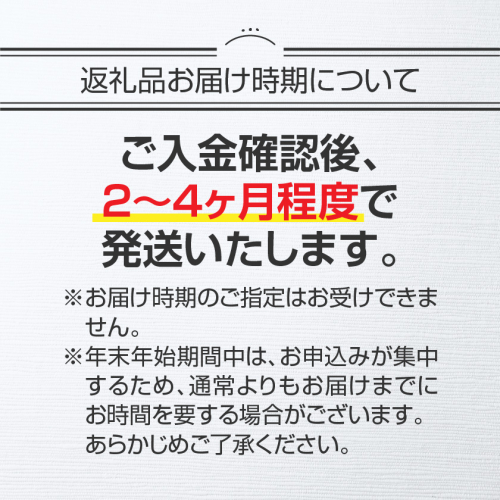 ※本返礼品は、ご入金確認後、2~4ヶ月程度で発送いたします。