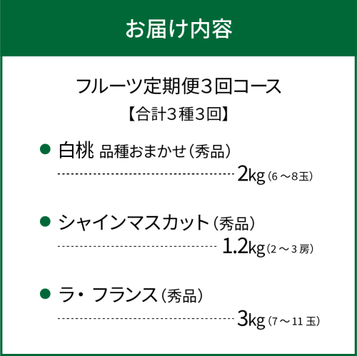 - 【令和8年産】河北町の夏と秋を満喫!お取り寄せフルーツ定期便3回(白桃・シャインマスカット・ラフランス) 【山形eLab】 ka074-030-r8