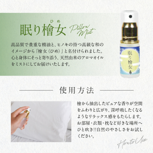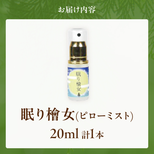 都農町製造『眠り檜女(ピローミスト) 20ml 』計1本 檜 香り 天然 リラックス 国産_T058-0015