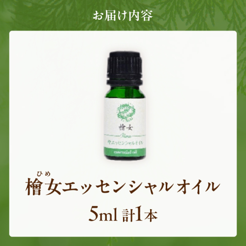 都農町製造『檜女(ひめ)エッセンシャルオイル(5ml) 』計1本 檜 香り 天然 リラックス 国産_T058-0025