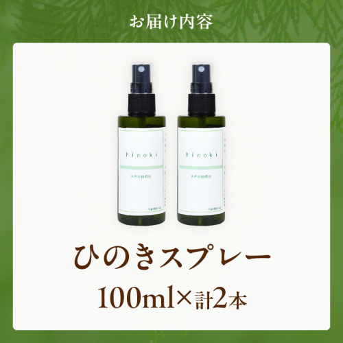 都農町製造『ひのきスプレー(100ml×2)』計2本 檜 香り 天然 リラックス 国産_T058-005
