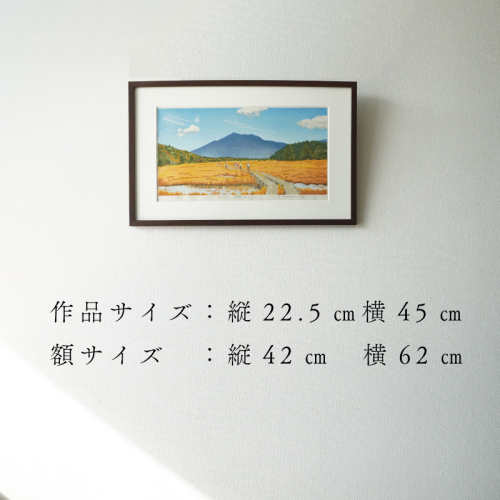【説明】 群馬県尾瀬ヶ原より 木版画家 陶山 俊一 愛知県小牧市在住の版画家 日本の自然の風景をモチーフに、あるがままの表現をめざす。 平面的なイメージのある木版画だが、15~25色を重ね、特に光の濃淡を意識することで遠近感や質感を出せるように心掛けている。 略歴 1992年 創作版画をはじめる 2003年 日本板画院展に初出展 2012年~2025年 美術年鑑に掲載される 2019年 院友、同人を経て委員に推挙される 2021年 華厳賞ほか受賞多数 2023年 岐阜県恵那市美術展 審査委員 2025年 日本板画院 審査委員 【生産地】 愛知県小牧市 【地場産品基準】 3号:下絵、転写、版作成、刷り、額装までの全工程