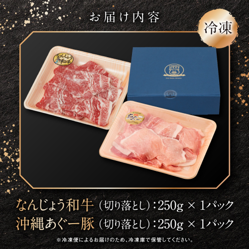 沖縄県南城市の特産「なんじょう和牛」と在来豚「あぐ~豚」を一度に味わえる贅沢な切り落としセットです。
