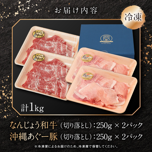 沖縄県南城市の特産「なんじょう和牛」と在来豚「あぐー豚」を一度に味わえる贅沢な切り落としセットです。