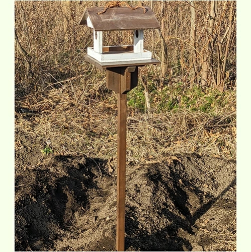 - エイジングアンティーク調 三角屋根のバードフィーダー 据え付け用天板&杭(オプション)×1台