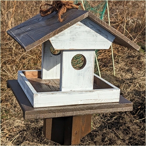 ・オプション:エイジングアンティーク調 三角屋根のバードフィーダー 据え付け用天板&杭×1台