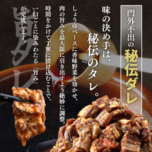 その中落ちカルビを、門外不出の秘伝ダレにじっくり漬け込み、旨みをぎゅっと凝縮。