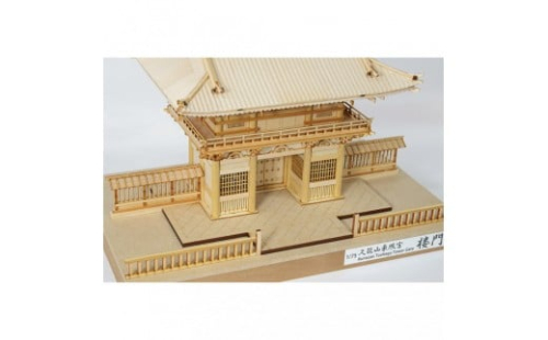 本キットは、その久能山東照宮の「楼門」を1/75スケールで再現。木造建築の質感と造作の美しさを、木製の加工部品をそのまま使用して組み上げる。